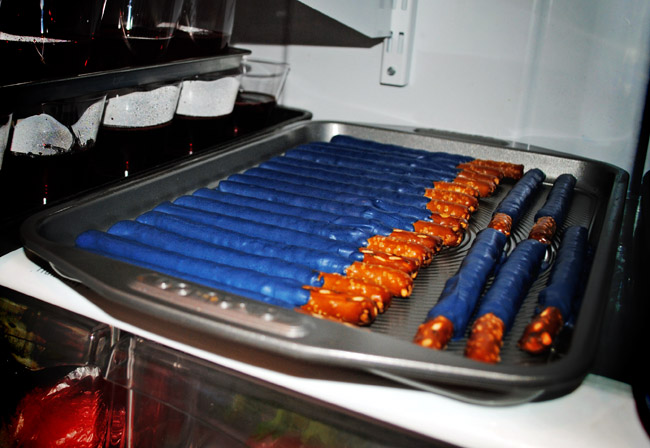 We had our big Star Wars bash for our little man not too long ago (I still need to post on that). One of my favorite treats were the Light Saber Pretzel Sticks. And they couldn't have been easier to put together.